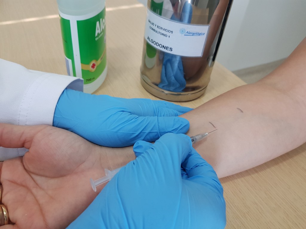 Mediante un protocolo preestablecido se aplican inyecciones intradérmicas con el medicamento o extracto alergénico de veneno de abeja o avispa, del que se quiere conocer si el paciente es o no verdaderamente alérgico.